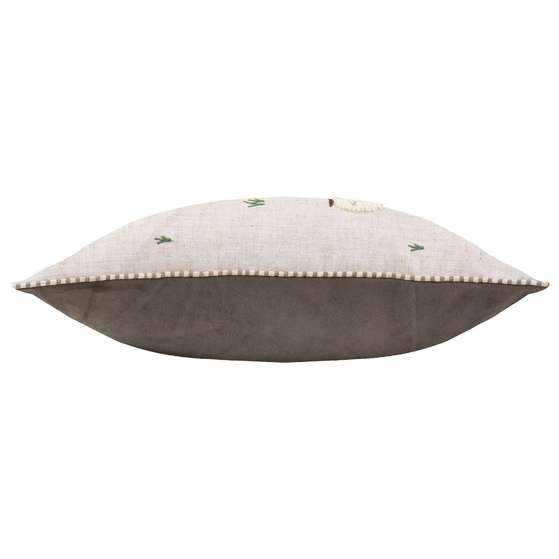 Add a touch of country charm to any room with the Ramble Sheep Cushion. This delightful square cushion features a unique tufted sheep design, complemented by a soft velvet reverse. Finished with a classic striped piped trim, it offers both comfort and rustic style. Ideal for bringing a cosy, pastoral feel to a sofa or armchair, this piece combines traditional texture with a whimsical animal motif for a truly inviting home accessory. Face: 85% Polyester 15% Linen, Reverse: 100% Polyester Dry Clean Only|Do Not Iron